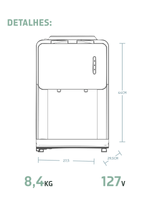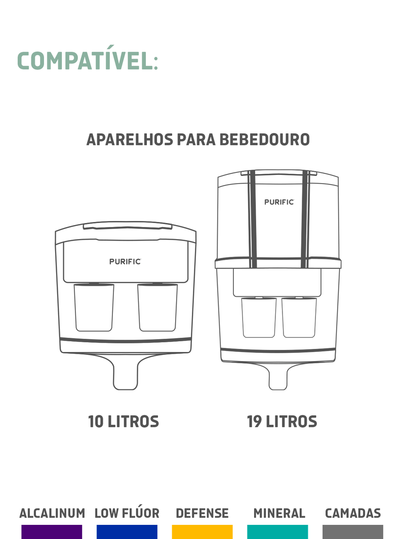 Os aparelhos da Purific possuem diferenças na capacidade de armazenamento da água e na quantidade de refis que os acompanham.