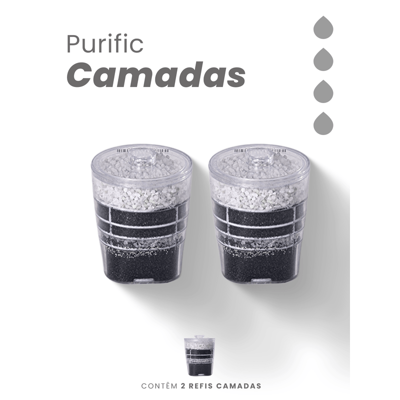 Produzido no Brasil, o Purific Camadas 10 garante água leve, equilibrada e purificada em múltiplas etapas, com qualidade comprovada pela Universidade Estadual de Maringá (UEM).Refil Purific Camadas. Proteção total em 7 etapas
