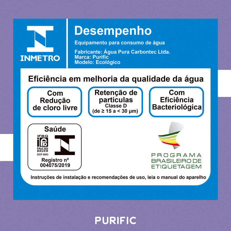 Livre de BPA e PP-BIP-F: certificado por cromatografia gasosa + espectrometria de massas (NBR 15176:2004).Ficha técnica | Purific Camadas 10 para Bebedouro