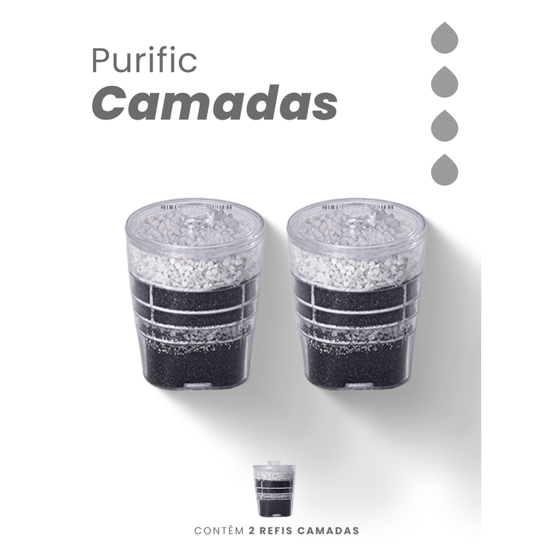 O Purificador acompanha 2 Refis Purific Camadas Troca Fácil, cada um com capacidade de purificação de até 600 litros. Com tecnologia de múltiplas barreiras, os refis realizam pré-filtragem, filtragem e tratamento da água, garantindo máxima segurança contra contaminantes invisíveis.Benefícios do Refil Purific Camadas