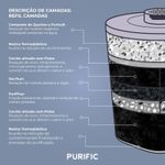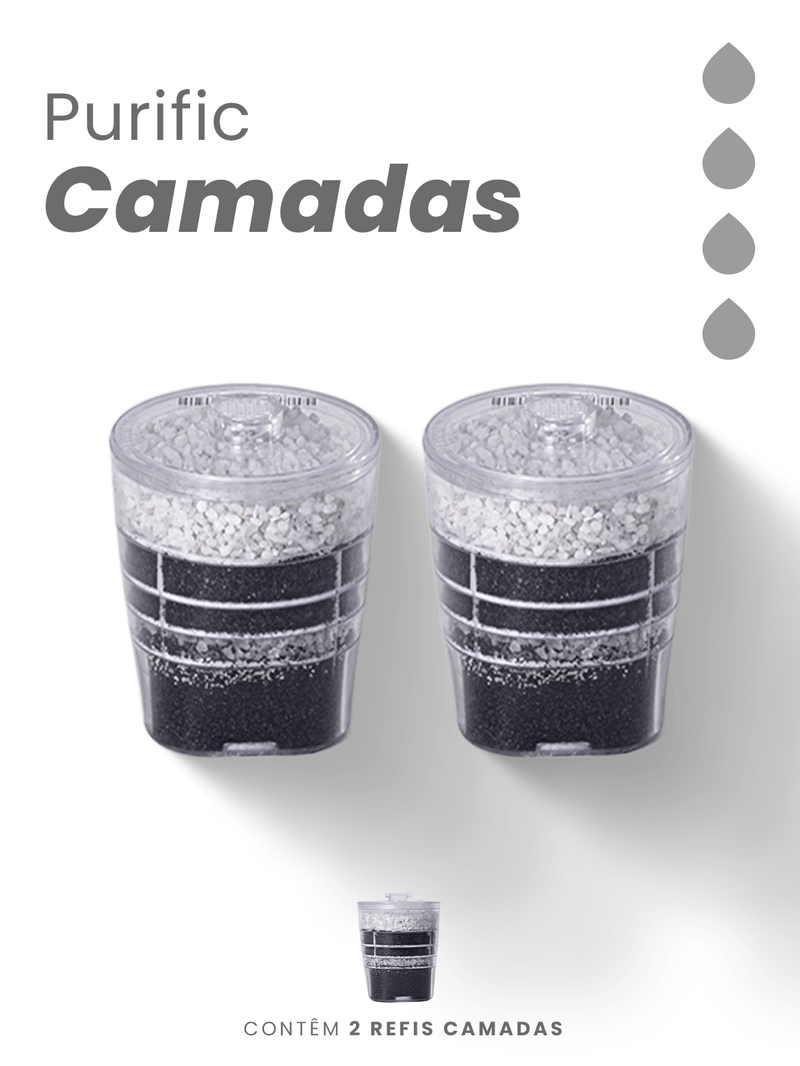 Produzido no Brasil, garante água leve, equilibrada e com múltiplas barreiras de proteção, com qualidade atestada pela Universidade Estadual de Maringá (UEM).Refil Purific Camadas – Proteção Total em 7 Etapas