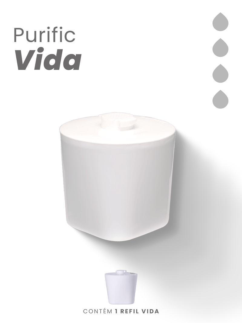 Cada Refil/Elemento Filtrante tem capacidade de purificar 600 litros de água, porém recomendamos que a troca seja realizada no máximo em 4 meses de uso.